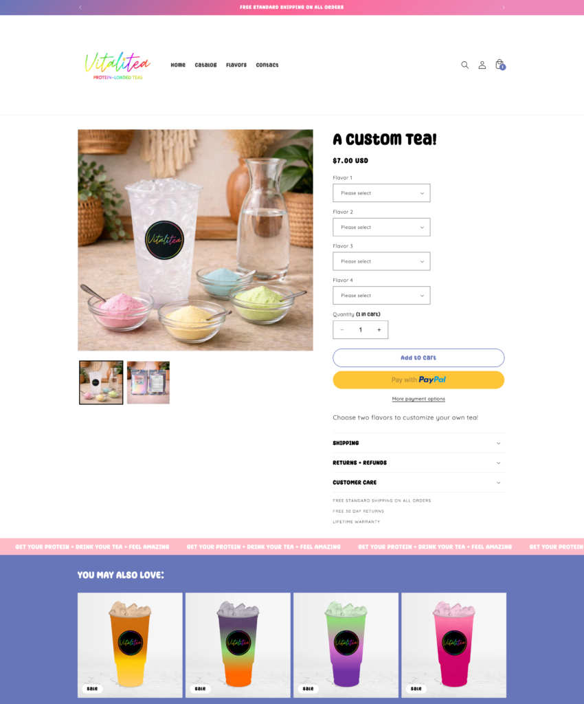 After testing the functionality together, we confirmed that the solution allowed Jessica to receive clear and organized custom orders, making it simple for her to see which four flavors each customer selected and prepare the product accordingly. I also updated the product page with the new imagery to better highlight the customization process and clearly show the tea packet that customers receive once their order ships.